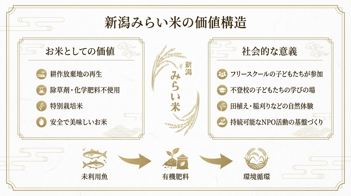 「耕作放棄地の利活用」✖️「不登校の子どもたちの学習の場づくり」という社会課題の解決への取り組みを掛け合わせた、特別な意味を持つお米でもあります。